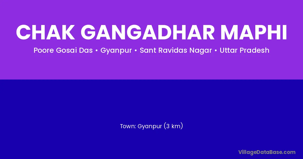 Gyanpur (3 km) is the nearest town to Chak Gangadhar Maphi village for major economic activities and is located approximately 3 km away.