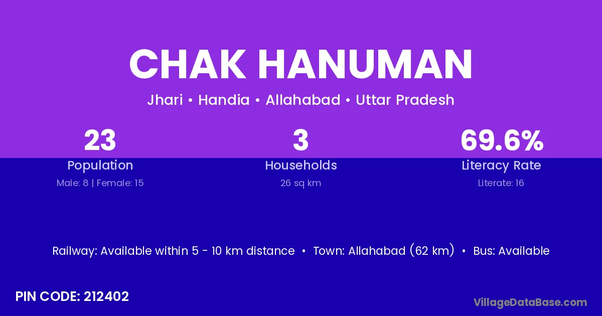 Gyanpur is the nearest town to Chak Hanuman village for major economic activities
