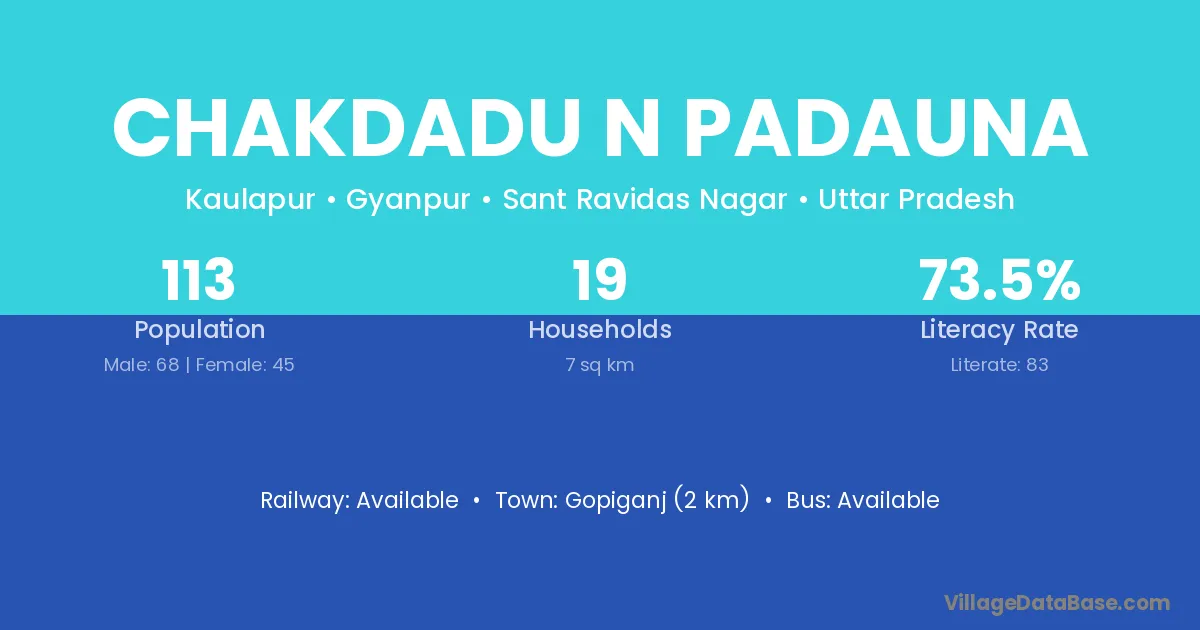 Gopiganj (2 km) is the nearest town to Chakdadu N Padauna village for major economic activities and is located approximately 2 km away.