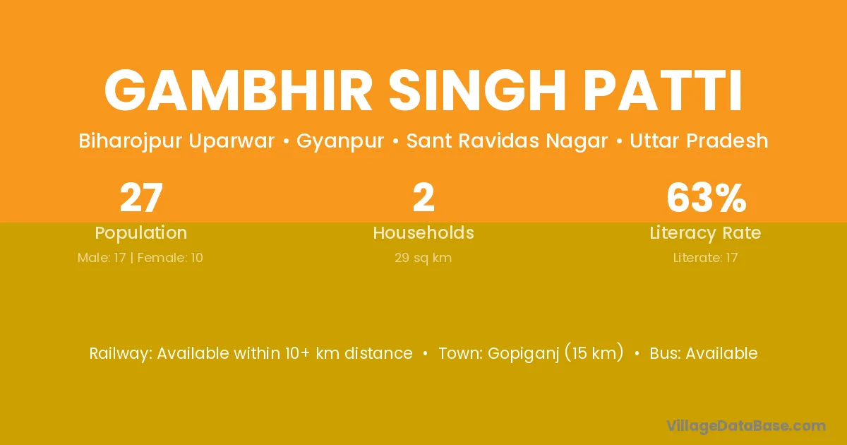Gopiganj (15 km) is the nearest town to Gambhir Singh Patti village for major economic activities and is located approximately 15 km away.