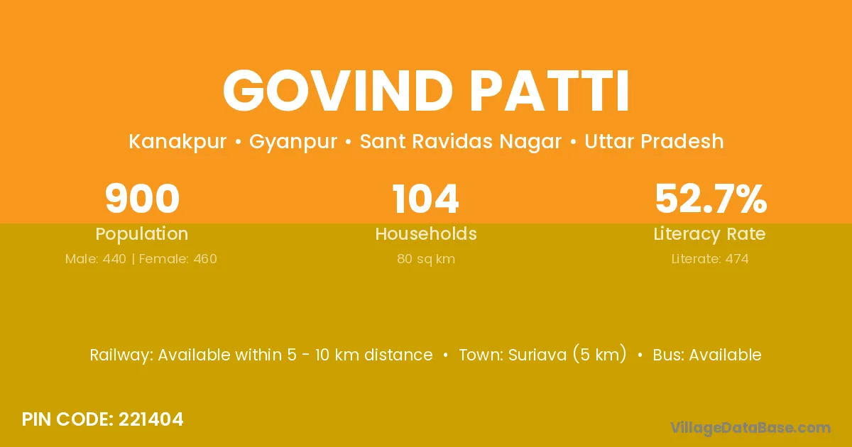Suriava (5 km) is the nearest town to Govind Patti village for major economic activities and is located approximately 5 km away.