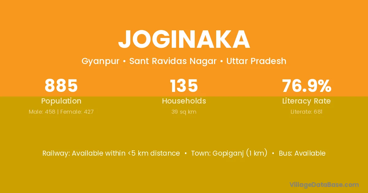 Gopiganj (1 km) is the nearest town to Joginaka village for major economic activities and is located approximately 1 km away.