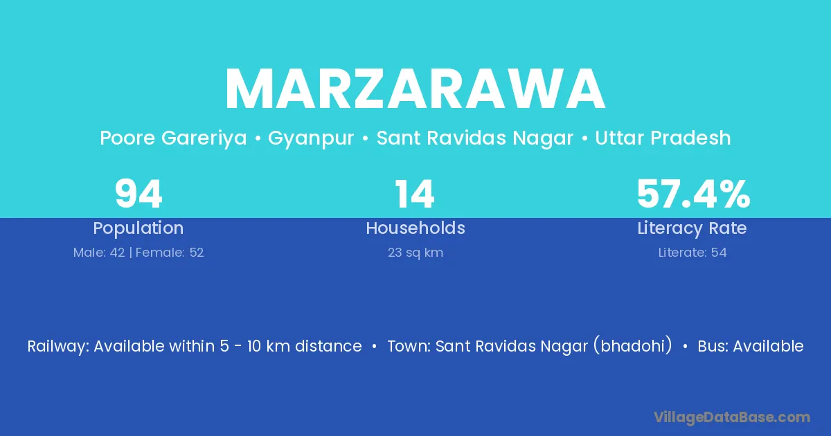 Sant Ravidas Nagar (bhadohi) is the nearest town to Marzarawa village for major economic activities