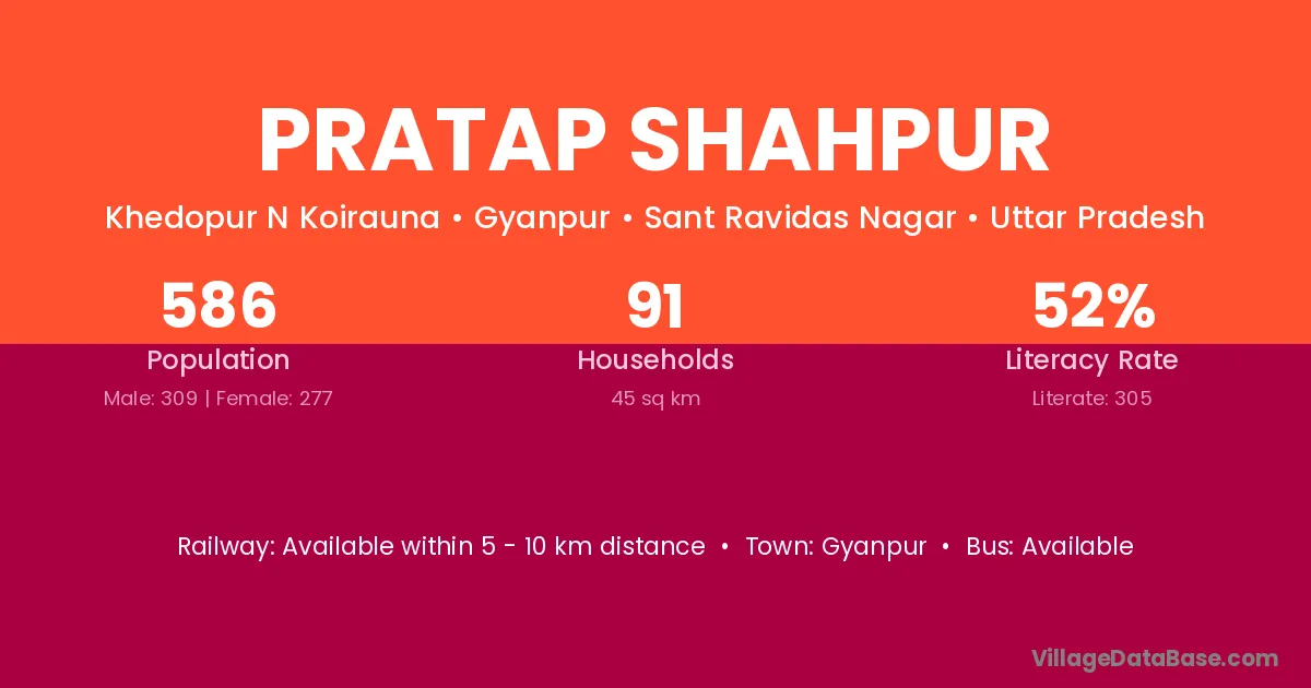 Pratap Shahpur village has a total population of 586 people, of which 309 are males and 277 are females.