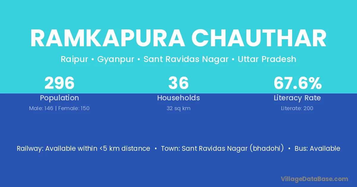 Sant Ravidas Nagar (bhadohi) is the nearest town to Ramkapura Chauthar village for major economic activities