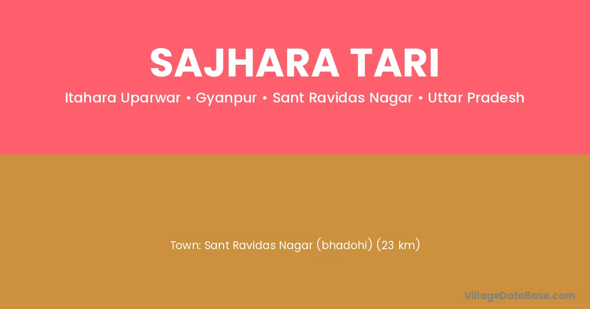 Sant Ravidas Nagar (bhadohi) (23 km) is the nearest town to Sajhara Tari village for major economic activities and is located approximately 23 km away.