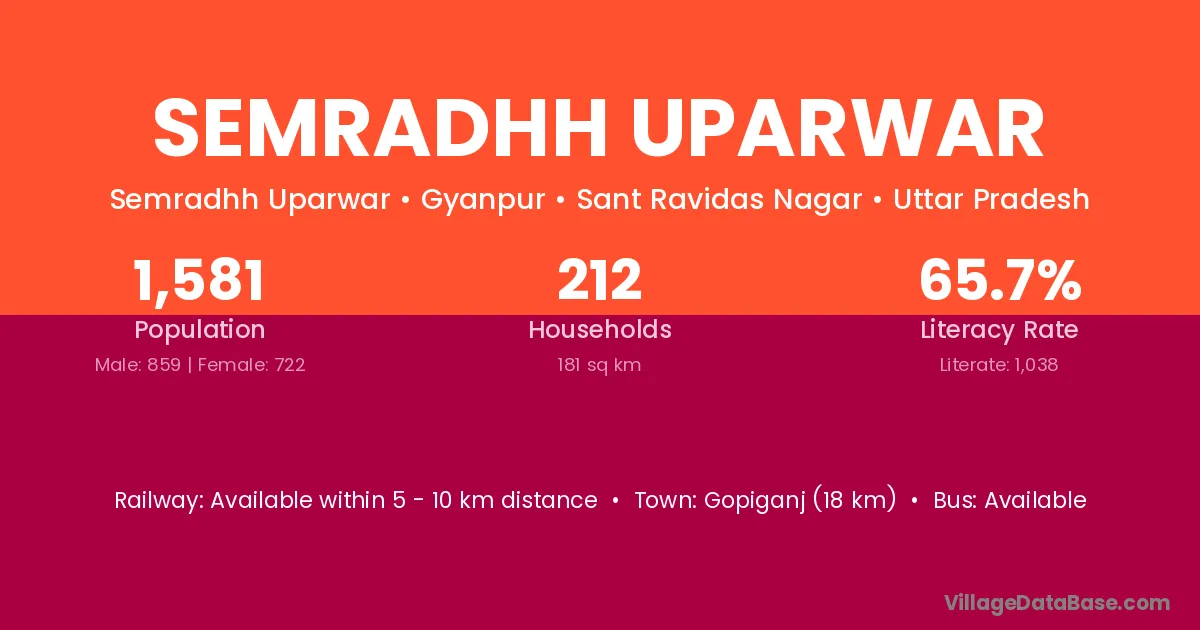 Gopiganj (18 km) is the nearest town to Semradhh Uparwar village for major economic activities and is located approximately 18 km away.