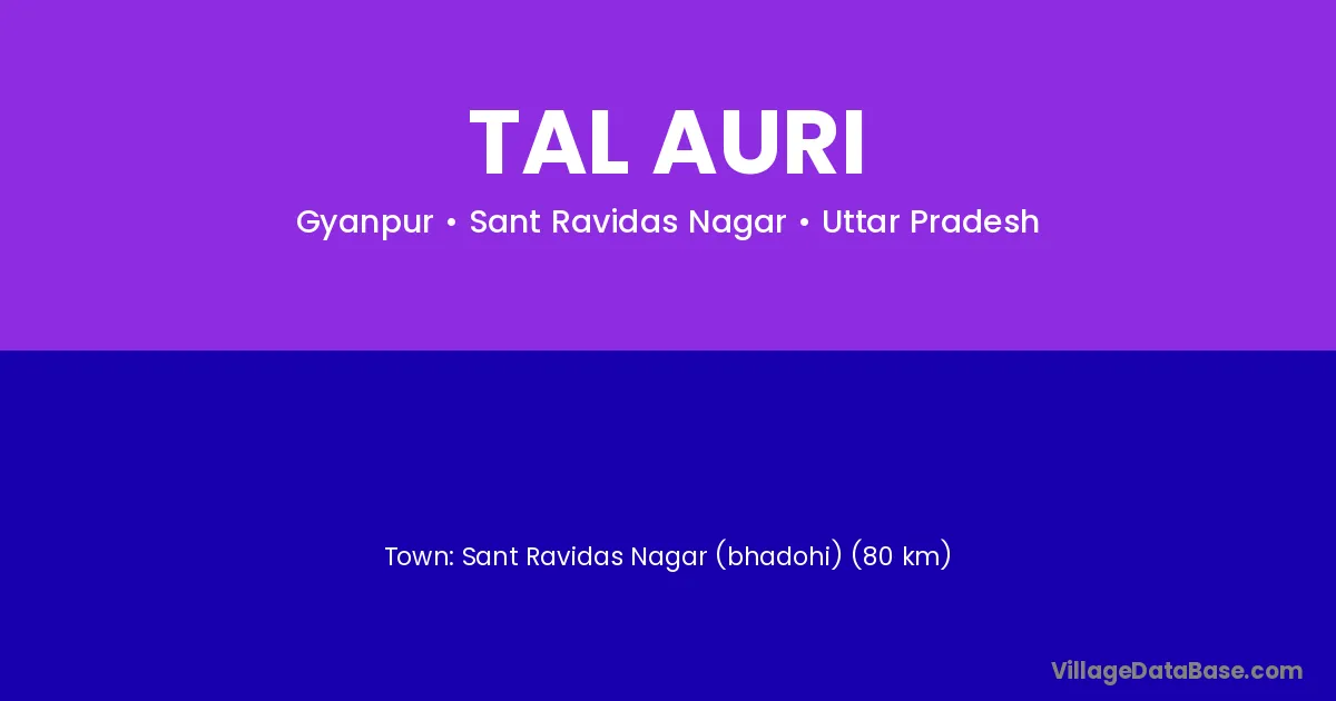 Sant Ravidas Nagar (bhadohi) (80 km) is the nearest town to Tal Auri village for major economic activities and is located approximately 80 km away.