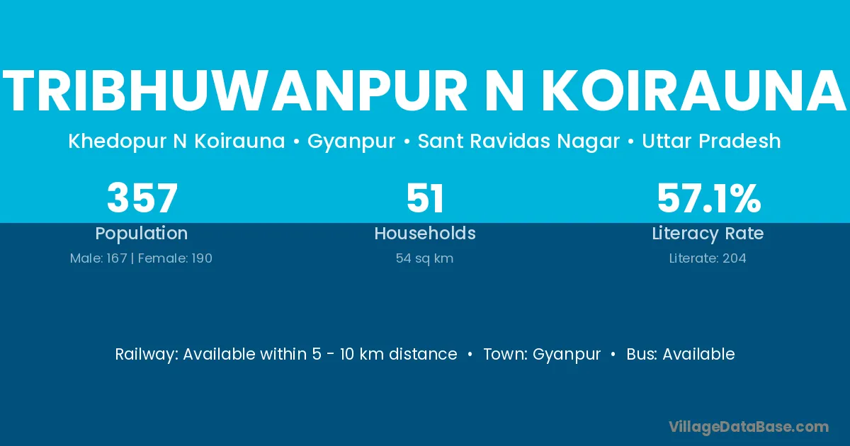 Tribhuwanpur N Koirauna village has a total population of 357 people, of which 167 are males and 190 are females.