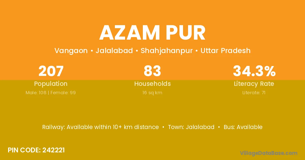 Azam Pur village has a total population of 207 people, of which 108 are males and 99 are females.
