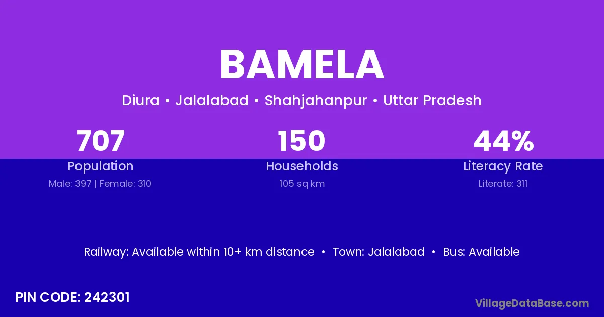Bamela village is located in the Jalalabad Tehsil of the Shahjahanpur district in Uttar Pradesh .