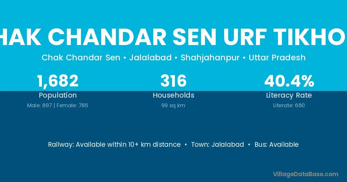 Chak Chandar Sen Urf Tikhola village has a total population of 1,682 people, of which 897 are males and 785 are females.
