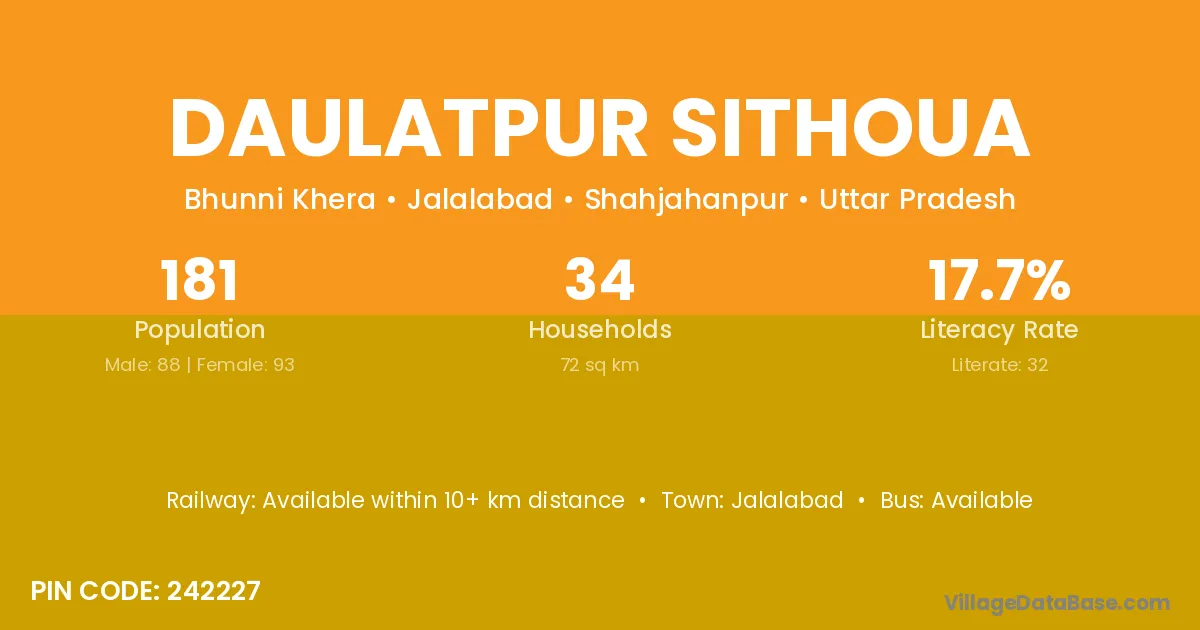 Daulatpur Sithoua village has a total population of 181 people, of which 88 are males and 93 are females.