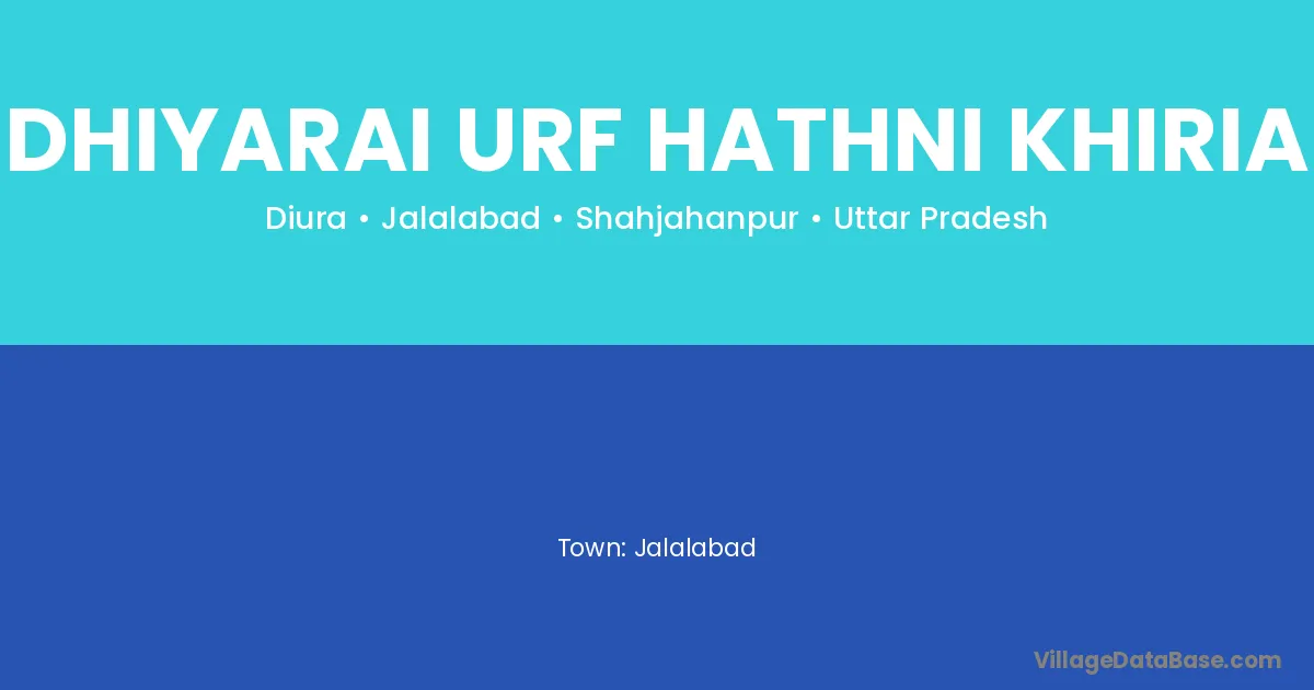 Dhiyarai Urf Hathni Khiria village is located in the Jalalabad Tehsil of the Shahjahanpur district in Uttar Pradesh .