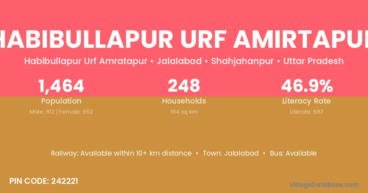 Habibullapur Urf Amirtapur village has a total population of 1,464 people, of which 812 are males and 652 are females.