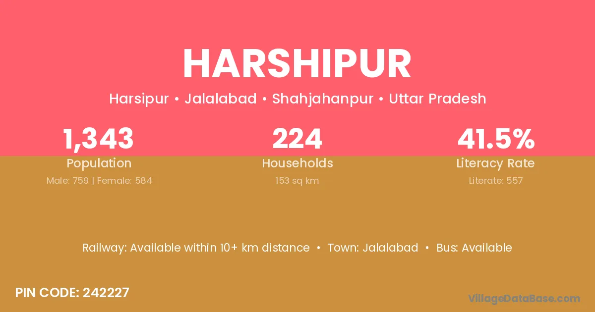 Harshipur village has a total population of 1,343 people, of which 759 are males and 584 are females.