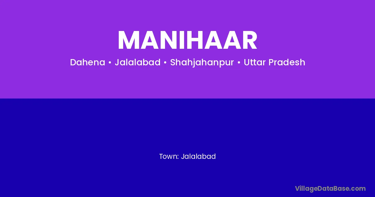 Jalalabad is the nearest town to Manihaar village for major economic activities