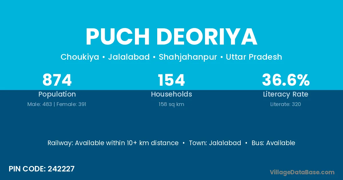 Jalalabad is the nearest town to Puch Deoriya village for major economic activities