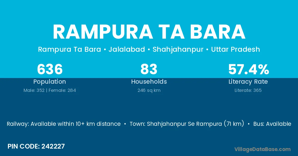 Rampura Ta Bara village has a total population of 636 people, of which 352 are males and 284 are females.