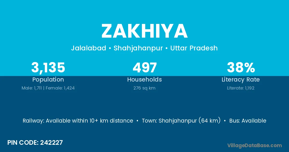 Shahjahanpur (64 km) is the nearest town to Zakhiya village for major economic activities and is located approximately 64 km away.