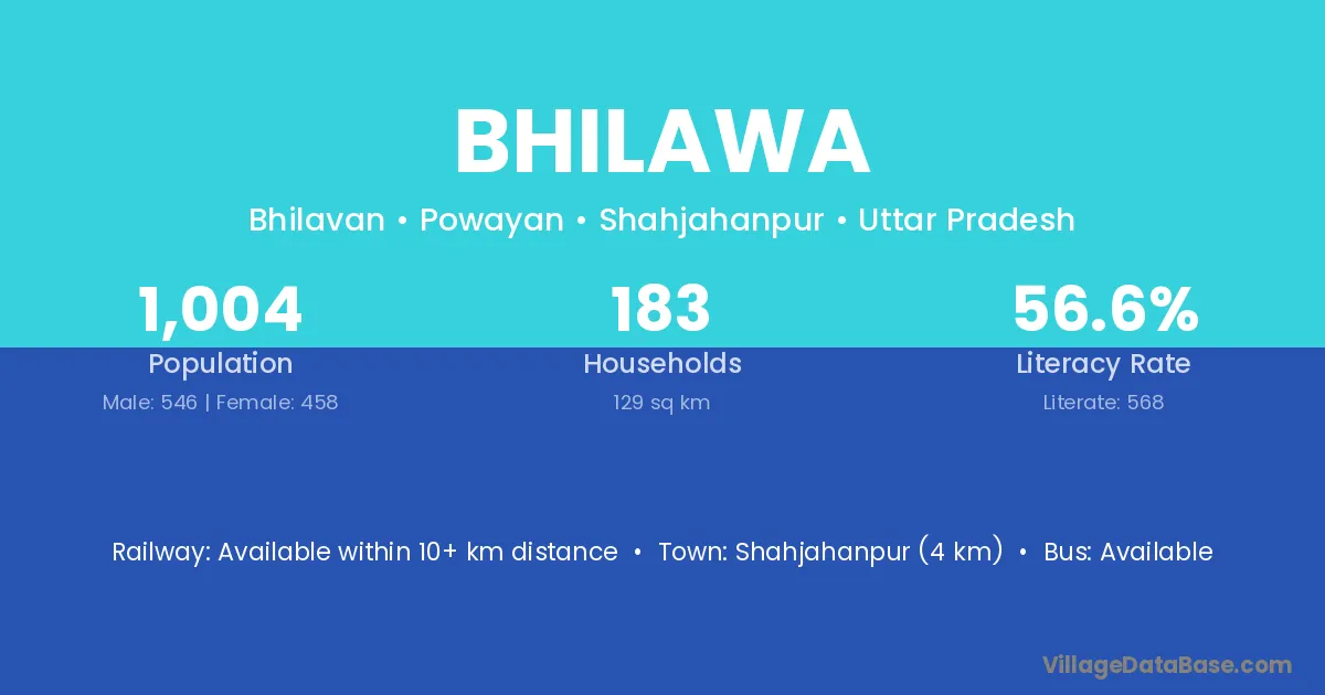 Shahjahanpur (4 km) is the nearest town to Bhilawa village for major economic activities and is located approximately 4 km away.