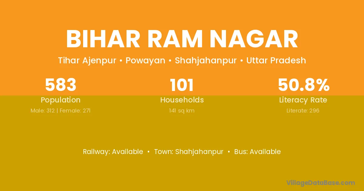 There are approximately 101 households in Bihar Ram Nagar village.