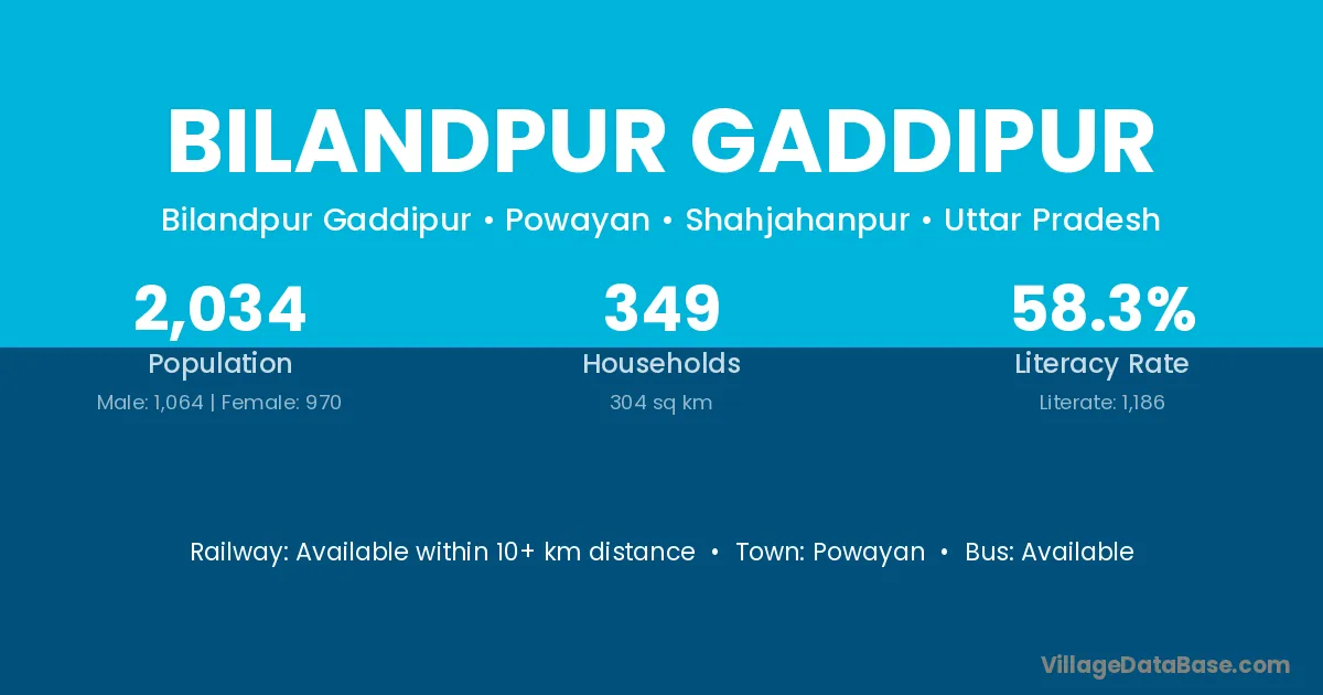 Bilandpur Gaddipur village has a total population of 2,034 people, of which 1,064 are males and 970 are females.