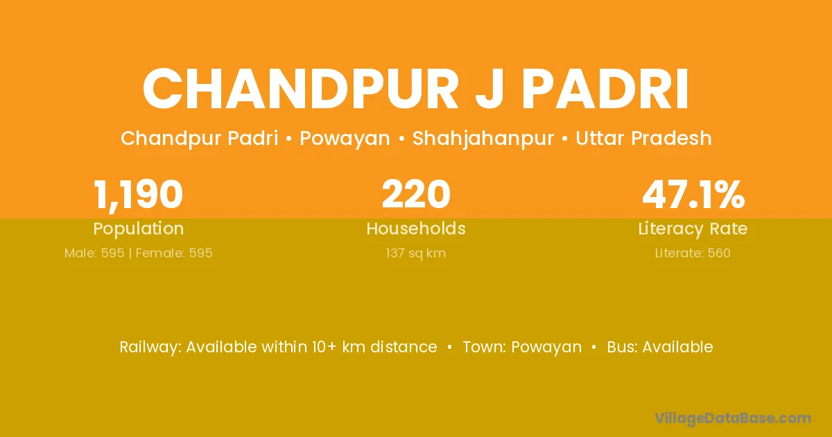 Chandpur J Padri village has a total population of 1,190 people, of which 595 are males and 595 are females.