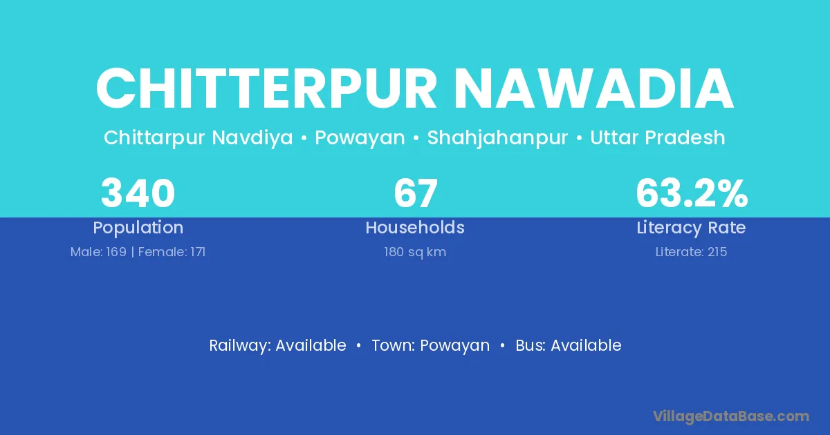 Chitterpur Nawadia village has a total population of 340 people, of which 169 are males and 171 are females.
