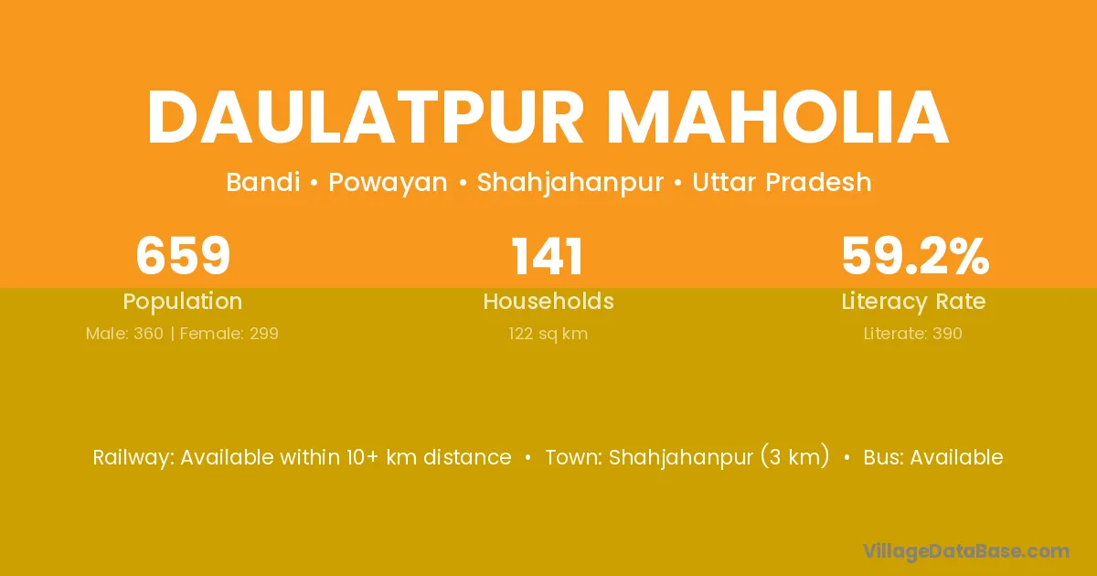 Daulatpur Maholia village has a total population of 659 people, of which 360 are males and 299 are females.