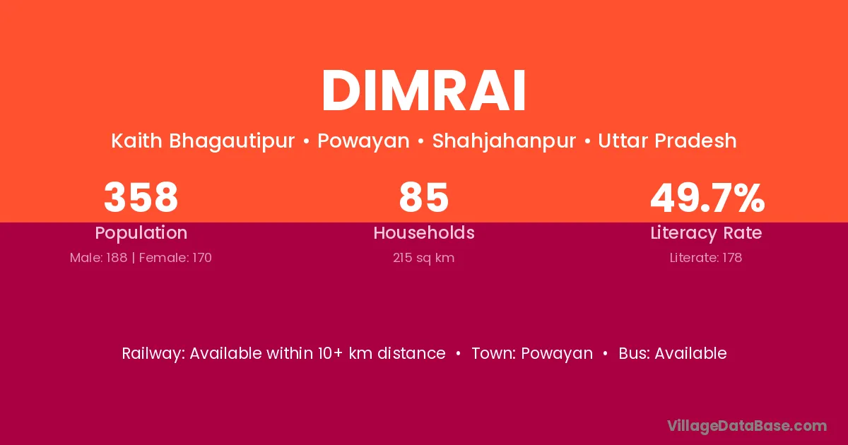 Dimrai village has a total population of 358 people, of which 188 are males and 170 are females.