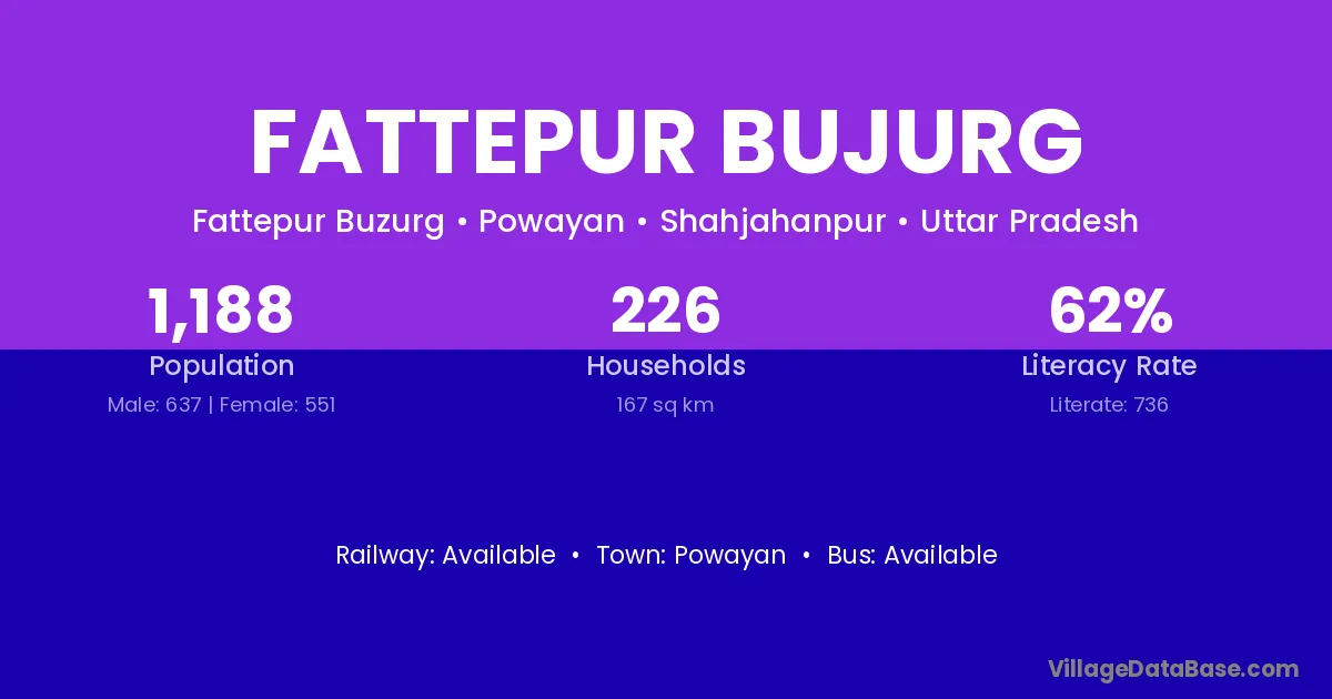 Fattepur Bujurg village has a total population of 1,188 people, of which 637 are males and 551 are females.