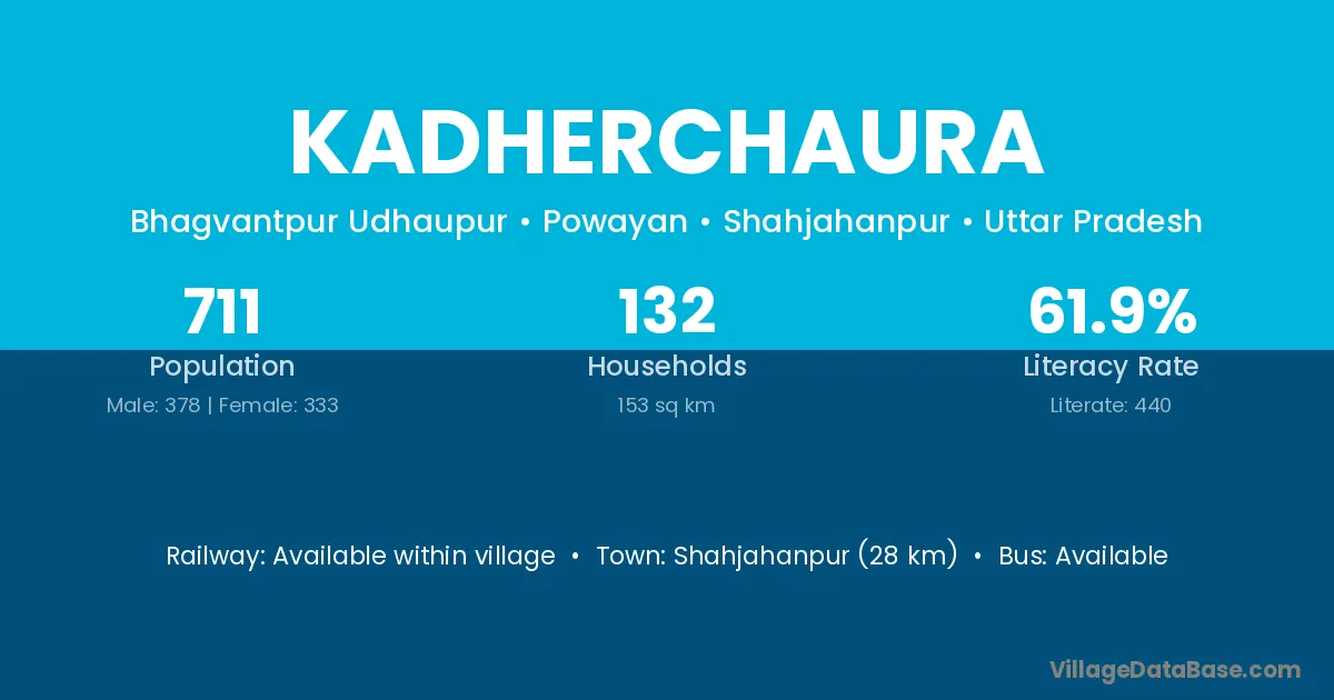 Shahjahanpur (28 km) is the nearest town to Kadherchaura village for major economic activities and is located approximately 28 km away.