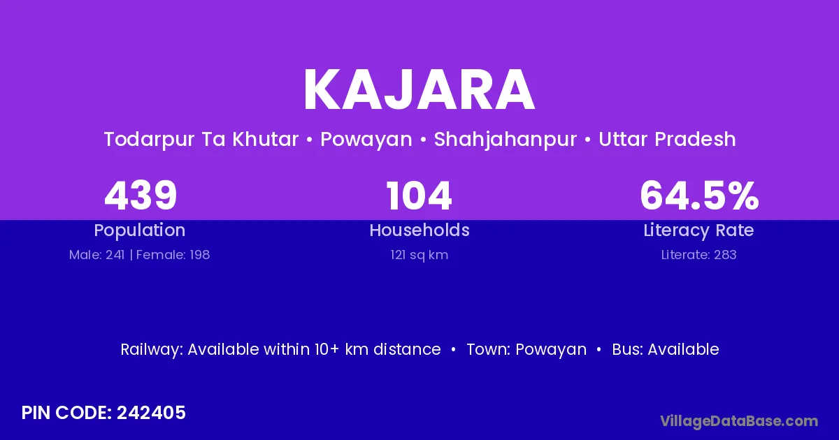 Kajara village has a total population of 439 people, of which 241 are males and 198 are females.