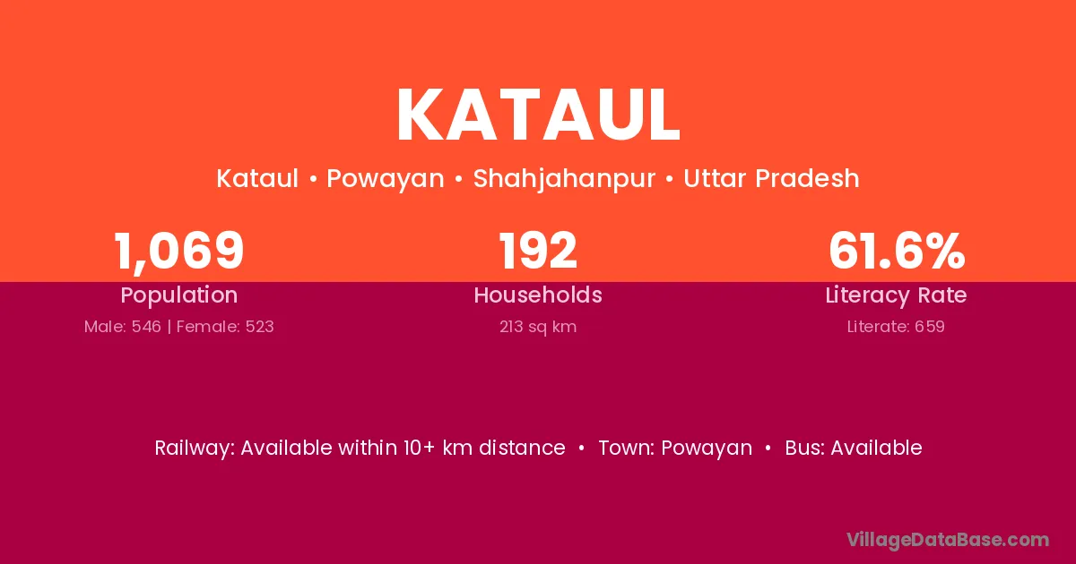 Kataul village has a total population of 1,069 people, of which 546 are males and 523 are females.