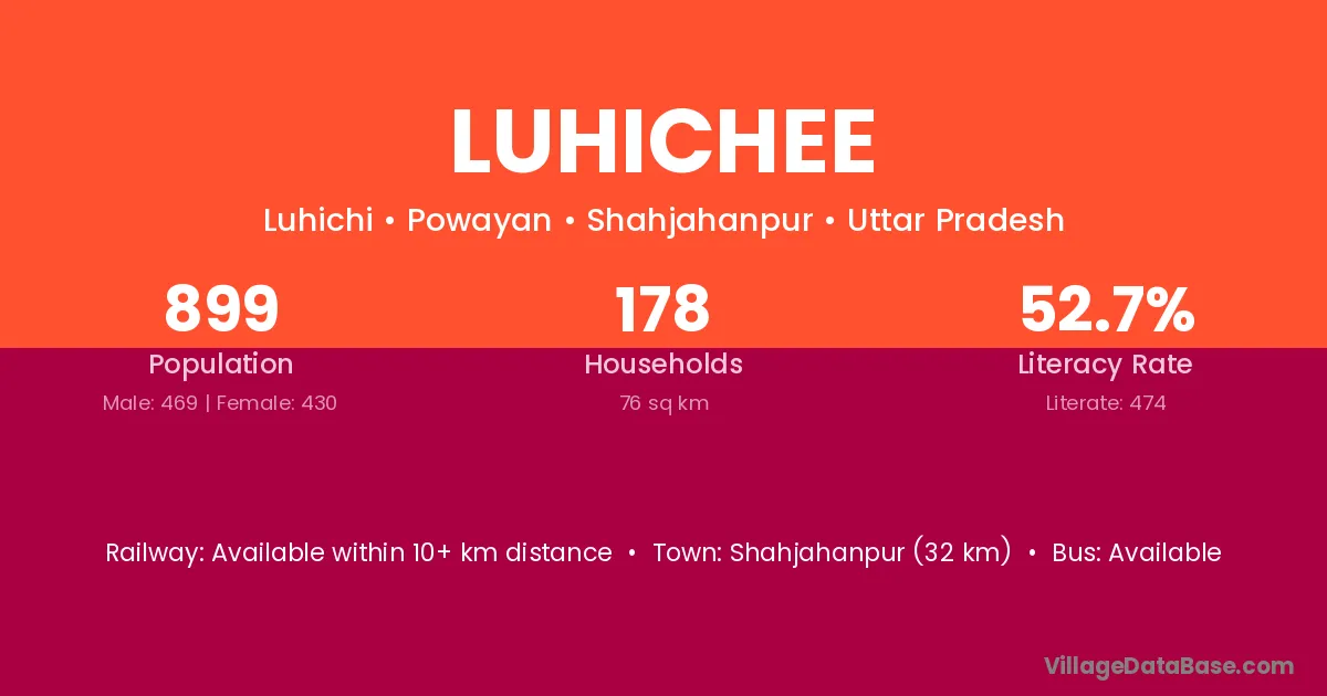 Shahjahanpur (32 km) is the nearest town to Luhichee village for major economic activities and is located approximately 32 km away.