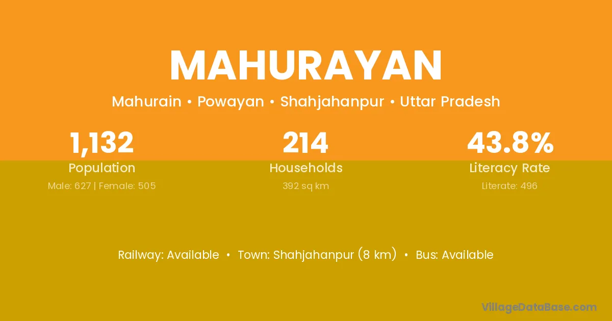 Shahjahanpur (8 km) is the nearest town to Mahurayan village for major economic activities and is located approximately 8 km away.