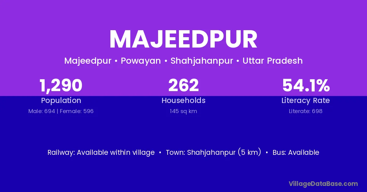 Shahjahanpur (5 km) is the nearest town to Majeedpur village for major economic activities and is located approximately 5 km away.