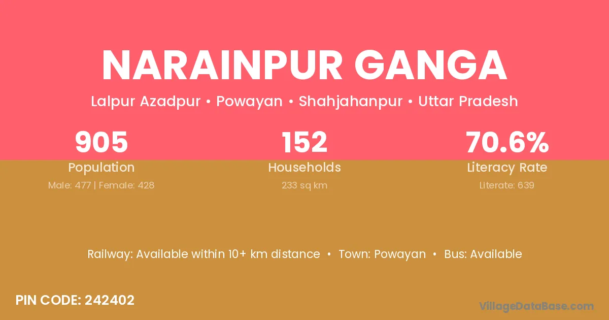 According to Census 2011 information, the village code of Narainpur Ganga village is 242402.