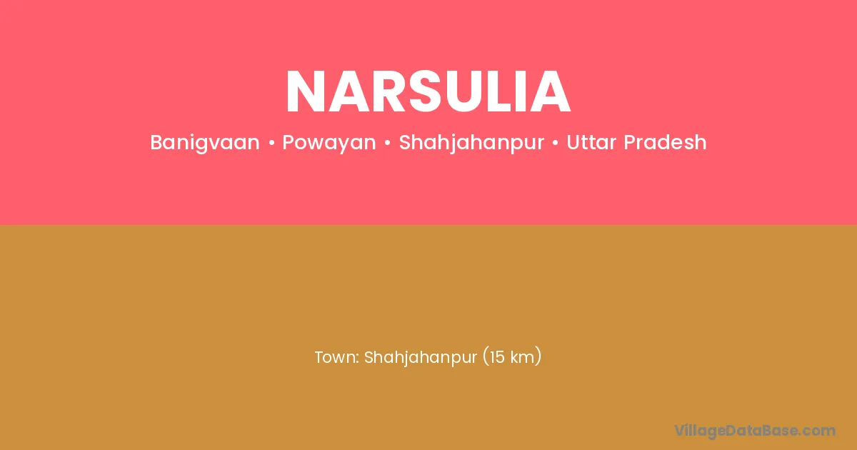 Shahjahanpur (15 km) is the nearest town to Narsulia village for major economic activities and is located approximately 15 km away.