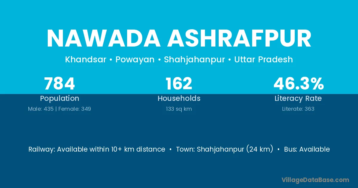Shahjahanpur (24 km) is the nearest town to Nawada Ashrafpur village for major economic activities and is located approximately 24 km away.