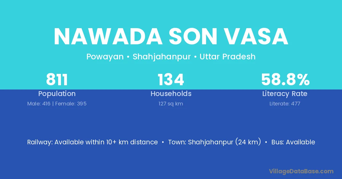 Shahjahanpur (24 km) is the nearest town to Nawada Son Vasa village for major economic activities and is located approximately 24 km away.