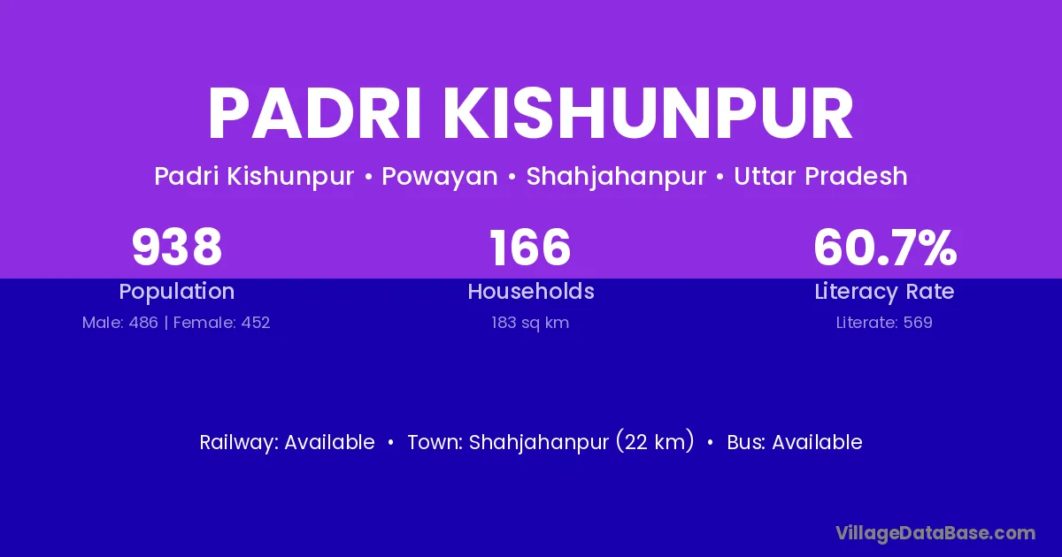 Shahjahanpur (22 km) is the nearest town to Padri Kishunpur village for major economic activities and is located approximately 22 km away.