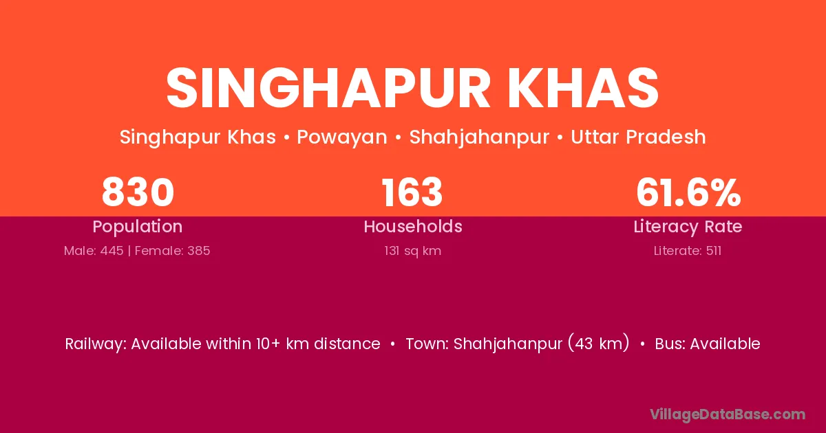 Singhapur Khas village has a total population of 830 people, of which 445 are males and 385 are females.