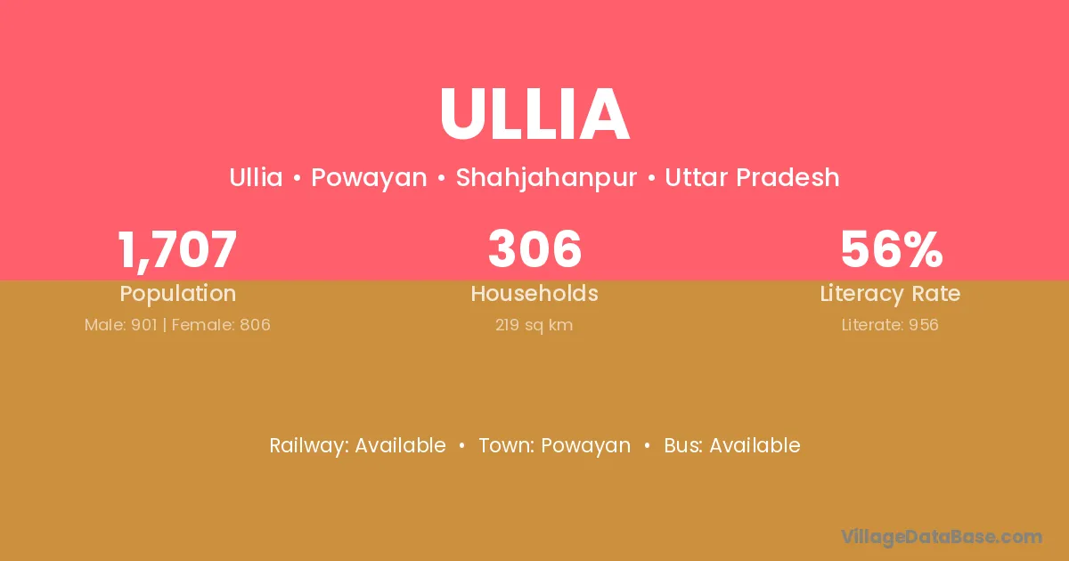 Ullia village is located in the Powayan Tehsil of the Shahjahanpur district in Uttar Pradesh .