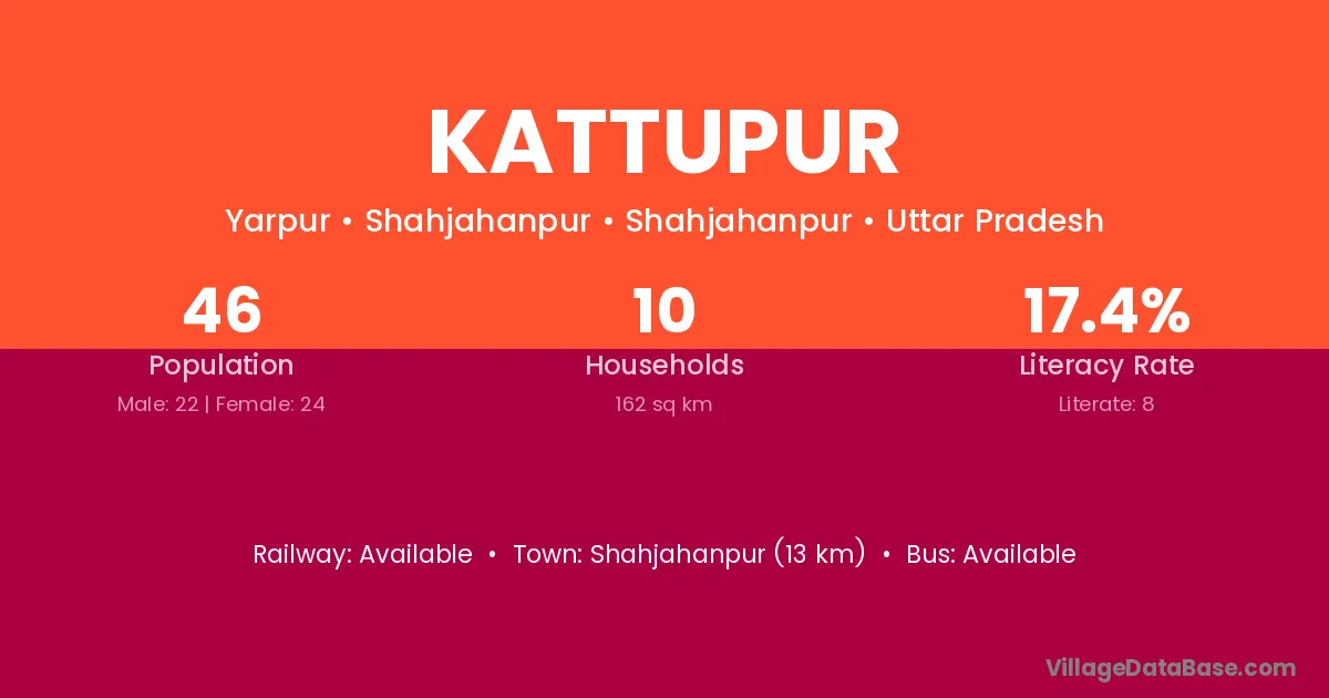Shahjahanpur (13 km) is the nearest town to Kattupur village for major economic activities and is located approximately 13 km away.
