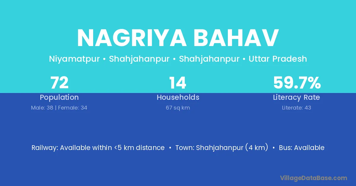 Shahjahanpur (4 km) is the nearest town to Nagriya Bahav village for major economic activities and is located approximately 4 km away.