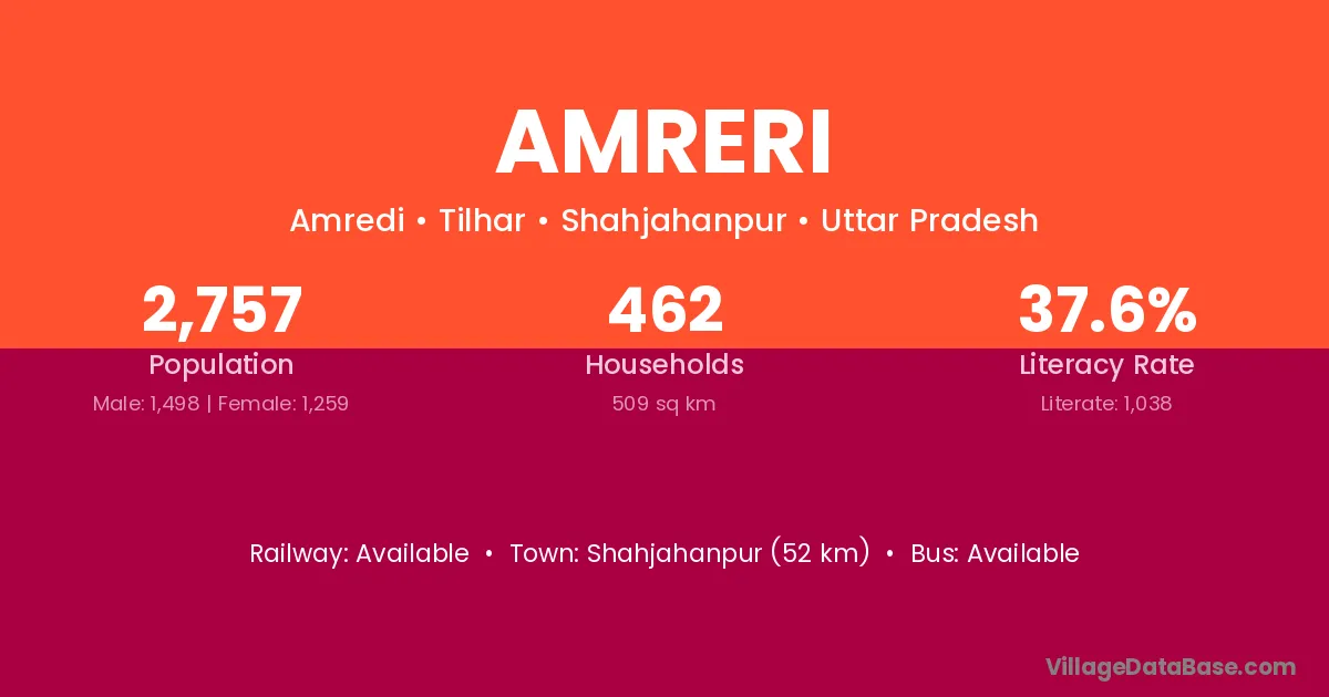 Shahjahanpur (52 km) is the nearest town to Amreri village for major economic activities and is located approximately 52 km away.