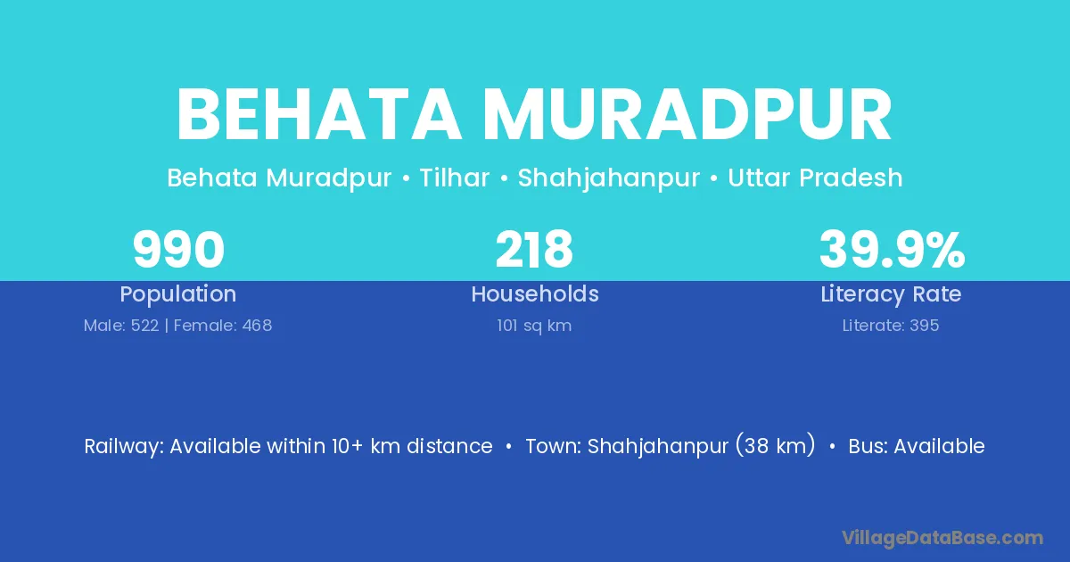 Behata Muradpur village has a total population of 990 people, of which 522 are males and 468 are females.