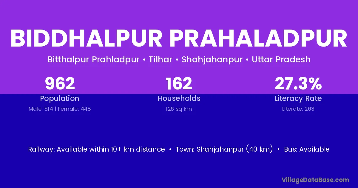 Biddhalpur Prahaladpur village has a total population of 962 people, of which 514 are males and 448 are females.